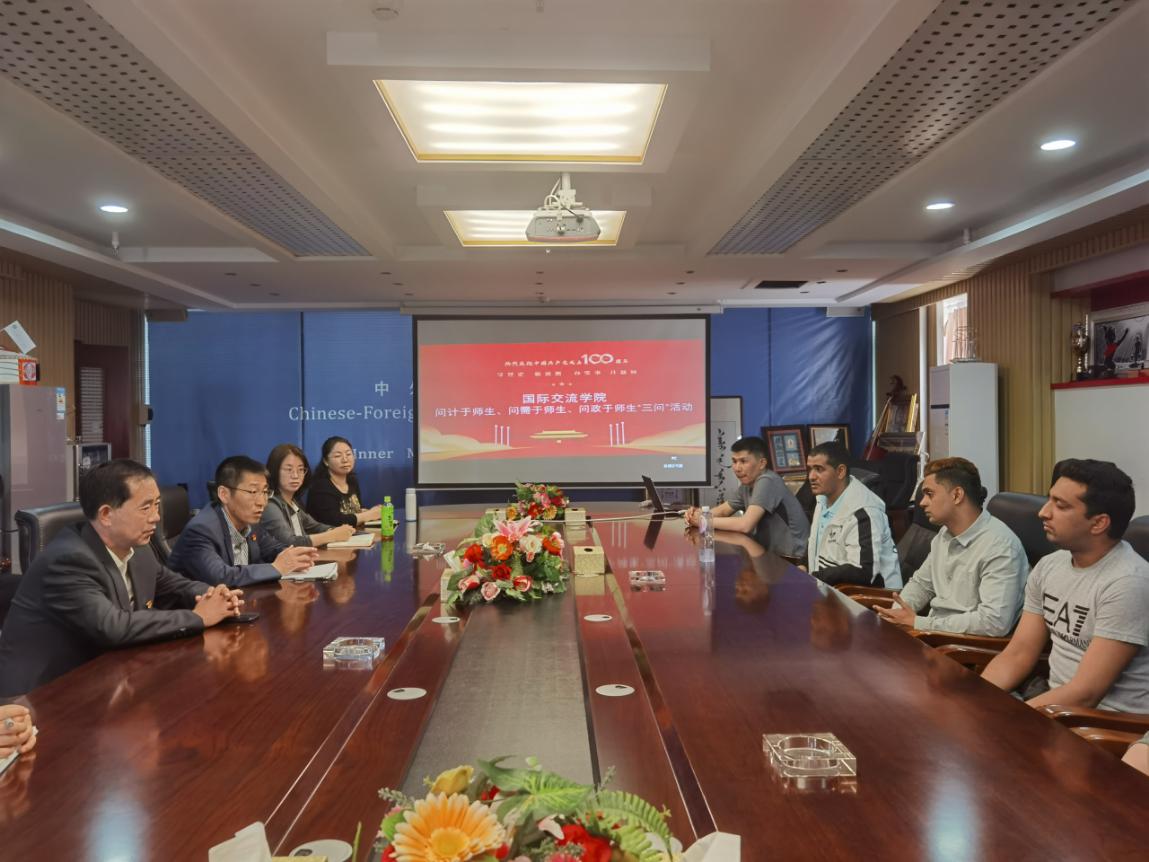 会上,学院领导表达了对留学生学习和生活的关心,希望畅所欲言,谈谈自己的需求和困难。留学生对学院的关心表示非常感谢,并结合自身的学习情况和生活实际,提出了在汉语水平考试、接种疫苗、线上上课、毕业就业等方面遇到的困难。学院领导认真聆听仔细记录,并对留学生提出的问题给予相应的建议和办法。