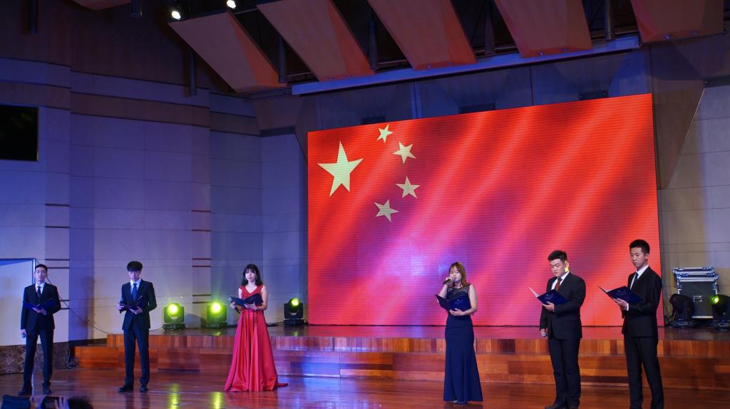 为深入贯彻落实“不忘初心,牢记使命”主题教育,积极营造欣欣向荣的校园氛围,2019年11月9日晚,yl6809永利官网“庆祝新中国成立70周年暨第七届《国娇杯》迎新生晚会在赛罕校区音乐厅隆重举行。来自20多个国家的留学生及国内学生参加本次晚会,yl6809永利官网党总支副书记屈原博士、yl6809永利官网党总支副书记、副院长苏宁巴雅尔老师及全体老师前来观看了演出。